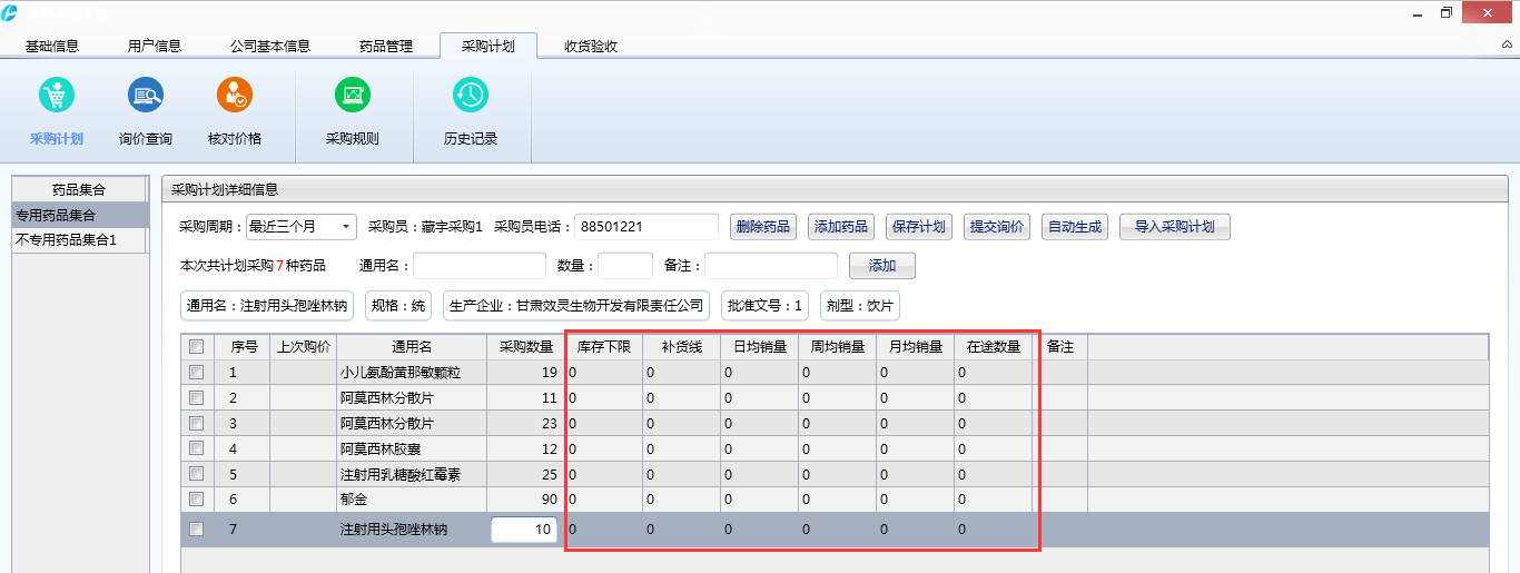 采購詢價(jià):采購人員可以通過平臺(tái)精準(zhǔn)計(jì)算出品種的缺貨數(shù)量,同時(shí)可以根據(jù)藥品的日均銷量、月銷量等參數(shù)進(jìn)行復(fù)核,最終將復(fù)核后的品種提交詢價(jià)。